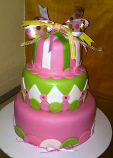 This cake was for a baby shower. The order was for a zebra and hot pink cake, with the baby's name incorporated. It was my first attempt at making zebra stripes. In hindsight I would have added more stripes, atleast to the front of the cake! It was one of those projects that ran smoothly without any hiccups, which was nice since I was also preparing for my husbands 40th B-Day at the same time! It turns out the mom- to-be went into labor at the baby shower!